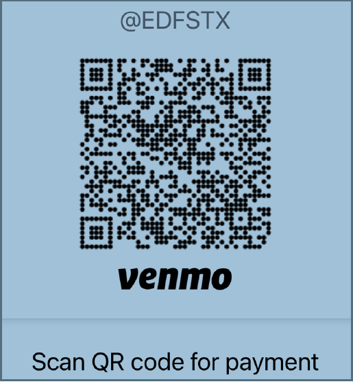 If you would like to make a contribution, we are currently accepting donations through the Venmo app. Our account is @edfstx